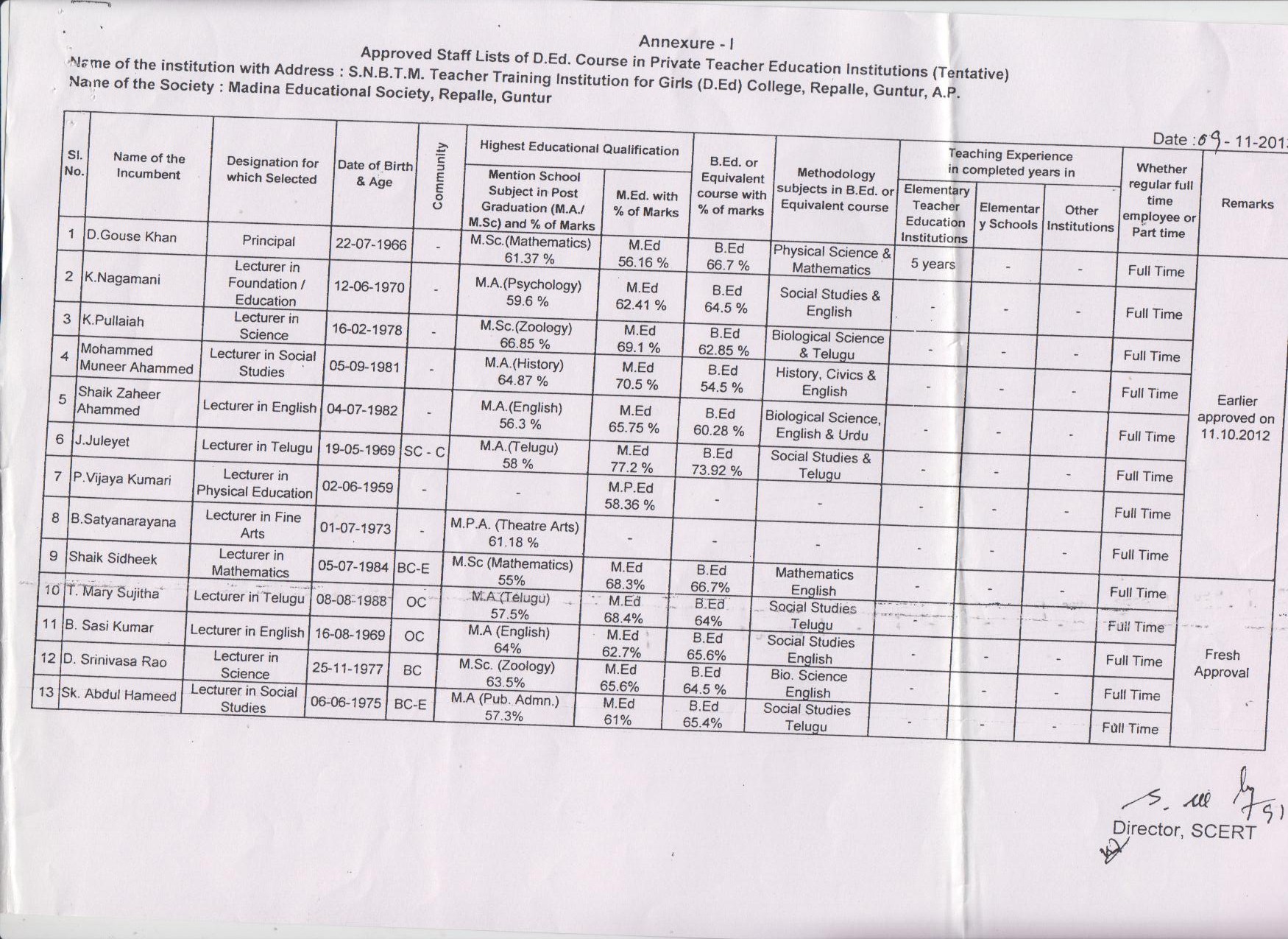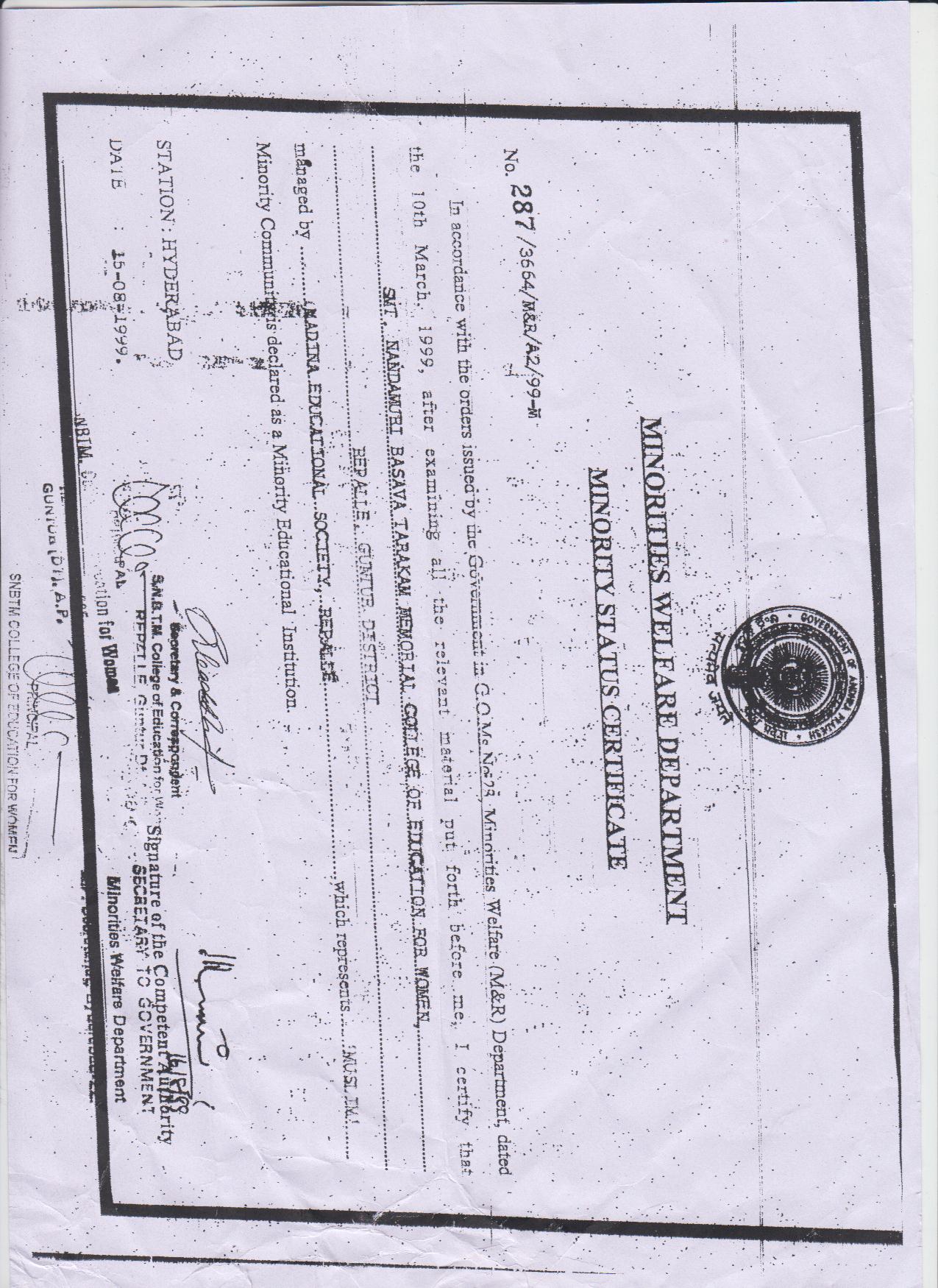 B.Ed MINIORITY CERTIFICATE