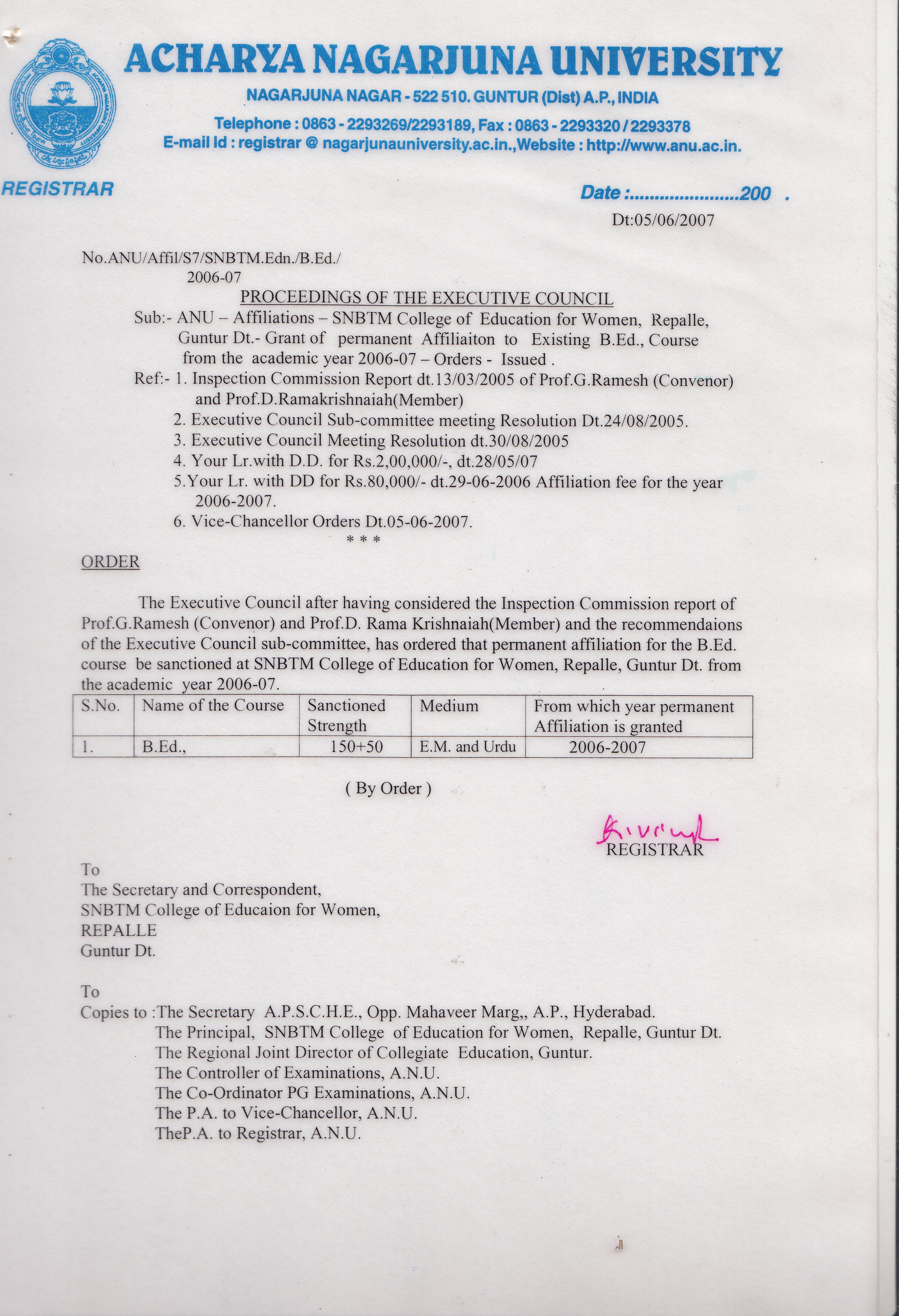 B.Ed AFFILIATION